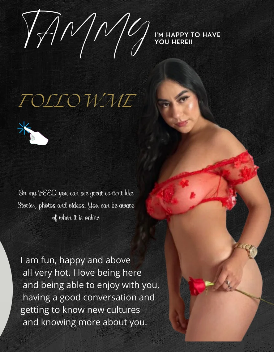 Hello, I'm Tammy and I'm glad to have you here, I'm 22 years old, I'm very happy, fun and above all hot, I love meeting people and that you make me vibrate so hard with my lovense, how nice that you take me to a great orgasm with strong tokens